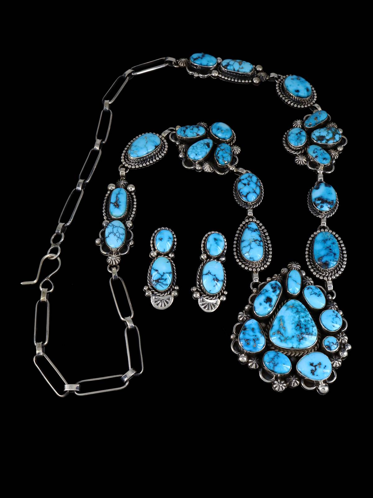 Native American Sterling Silver Sonoran Gold Turquoise Necklace Set