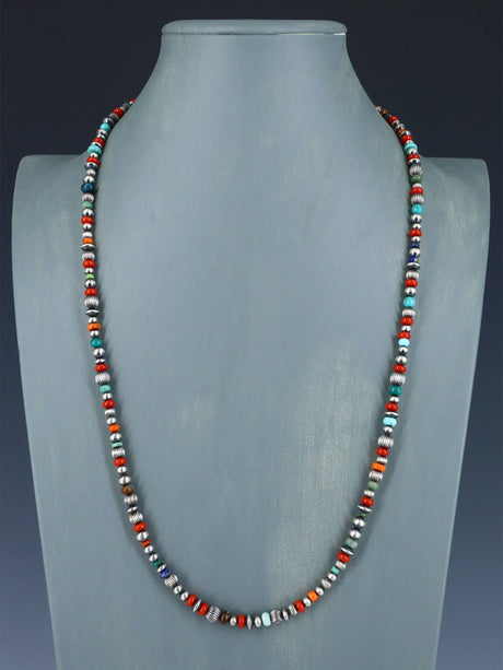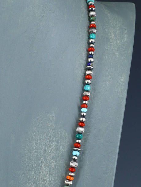 Native American Jewelry Multistone Sterling Silver Beaded Necklace
