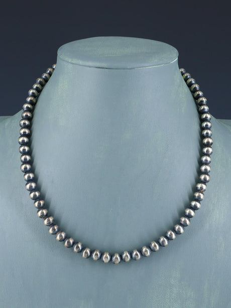 Navajo Jewelry Single Strand Sterling Silver Beaded Necklace