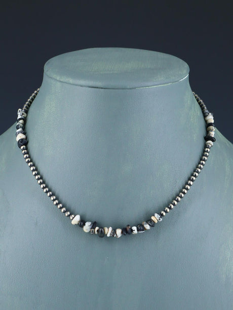 14" Navajo Jewelry White Buffalo Sterling Silver Beaded Choker Necklace