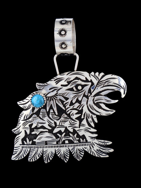 Native American Sterling Silver Turquoise Eagle Pendant