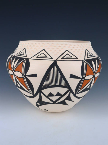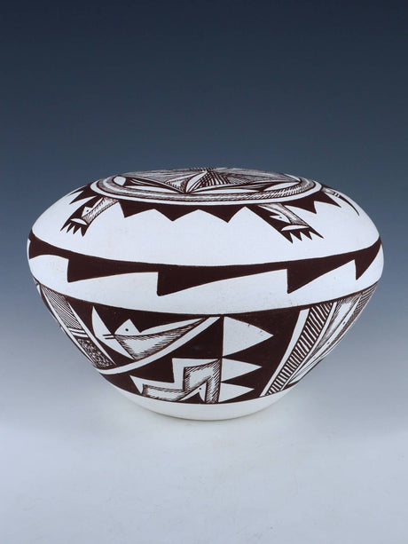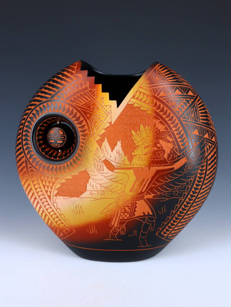 Etched Hummingbird Horsehair Acoma Pueblo Pottery Vase