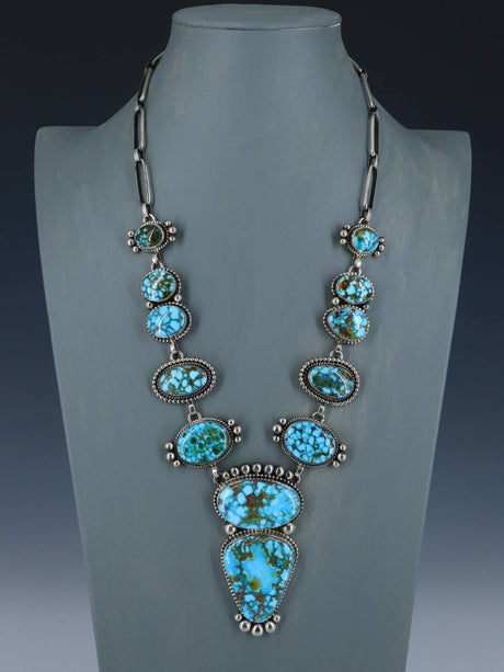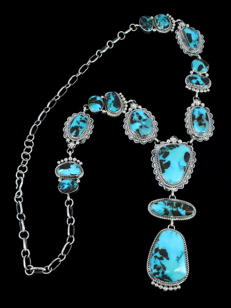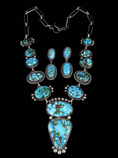 Native American Sterling Silver Royston Turquoise Squash Blossom Necklace Set