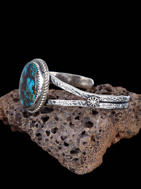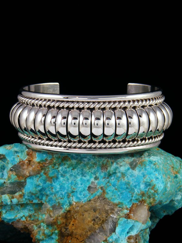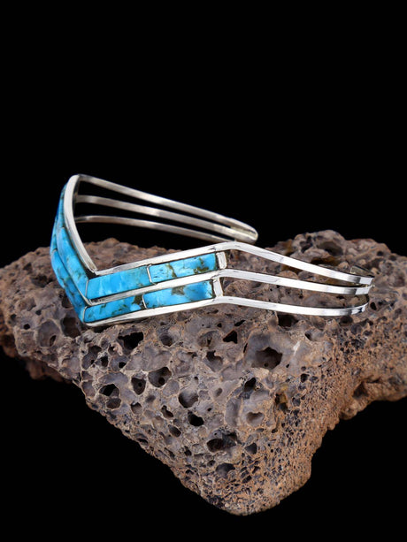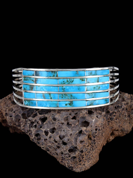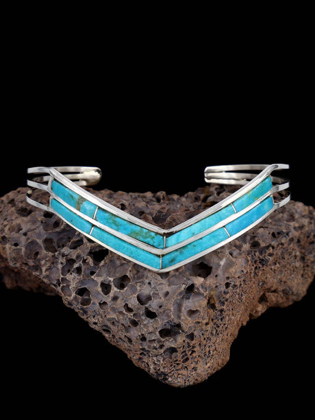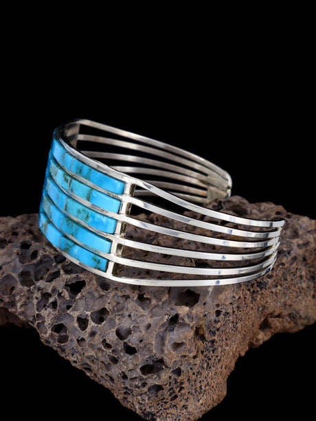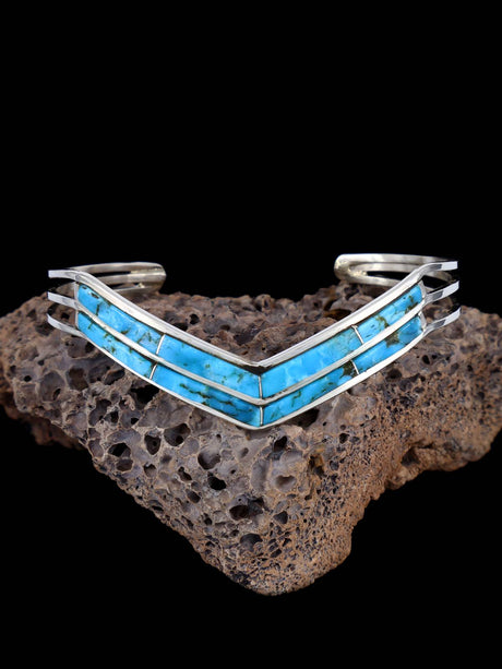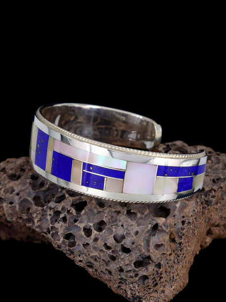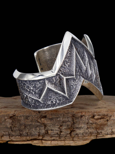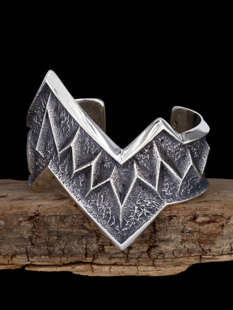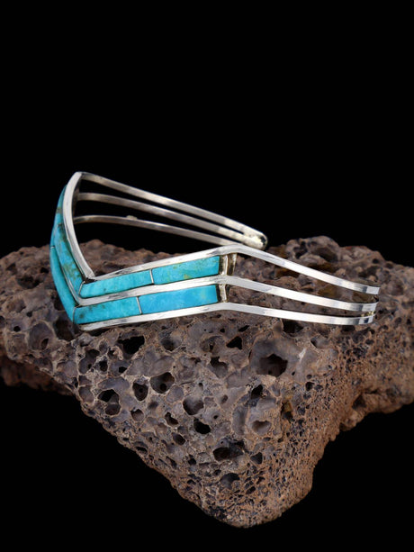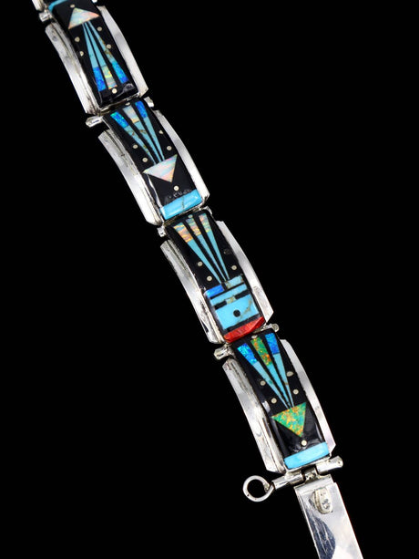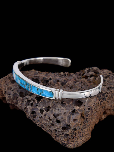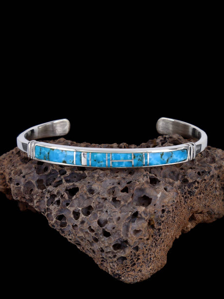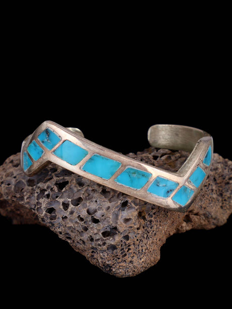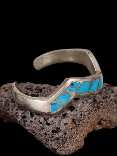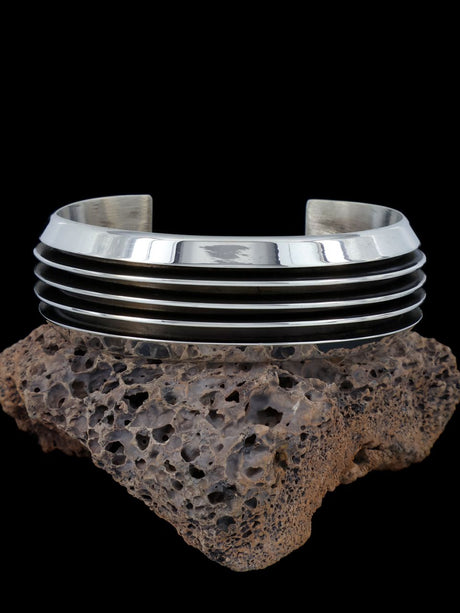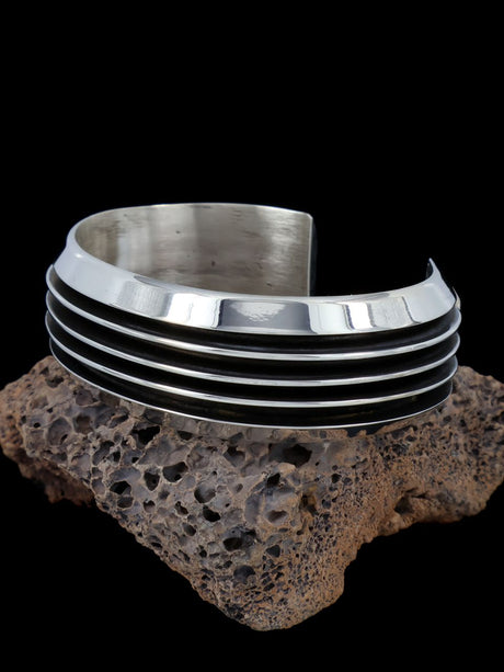 Native American Sterling Silver Onyx Inlay Cuff Bracelet