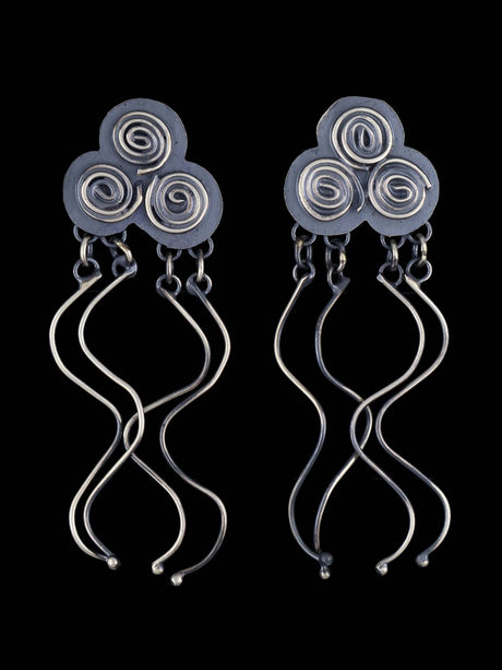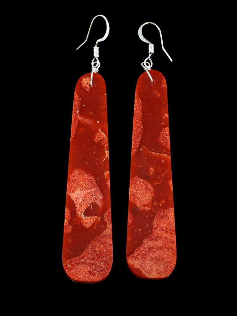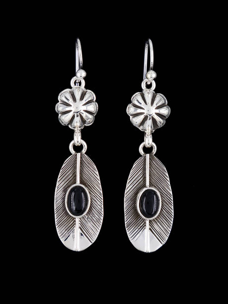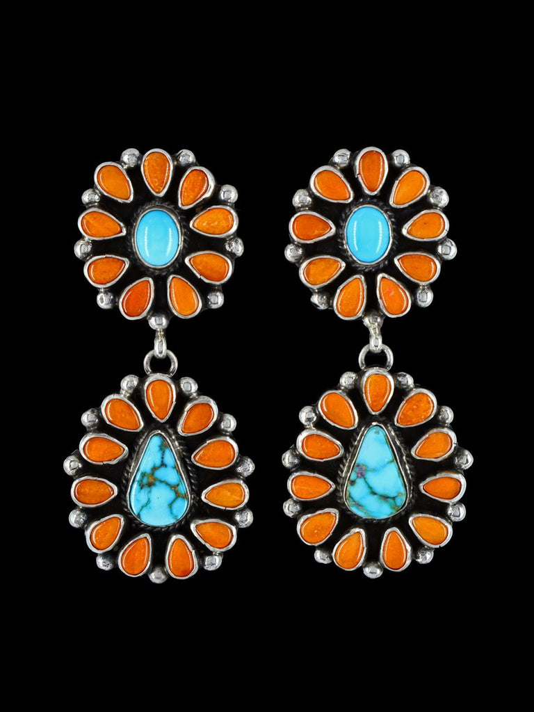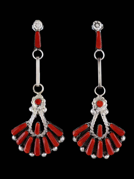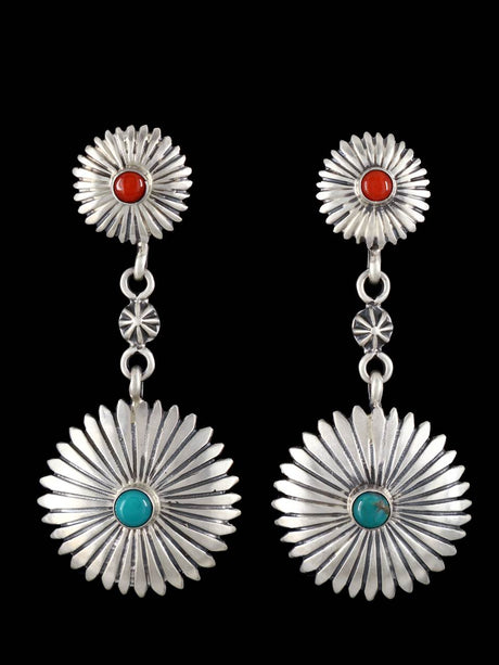 Native American Sterling Silver Coral Dangle Flower Earrings