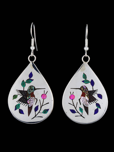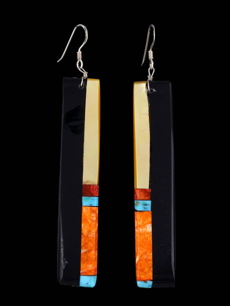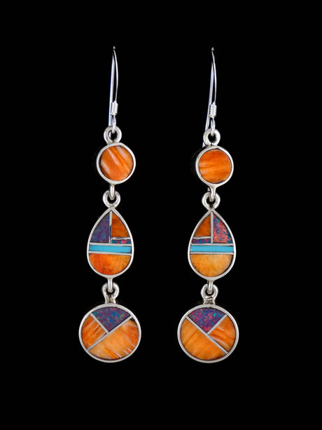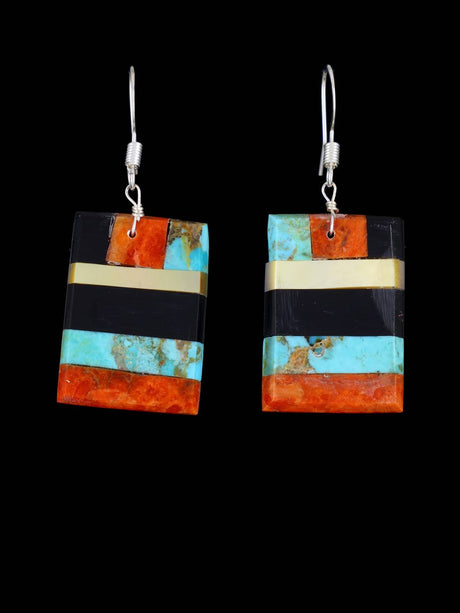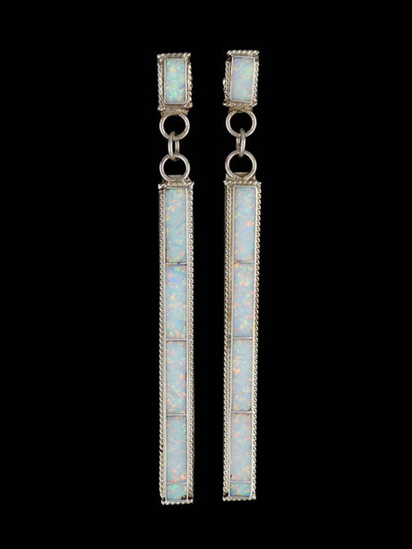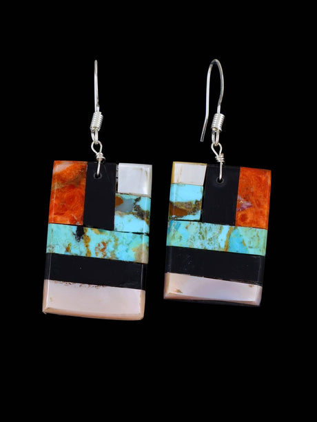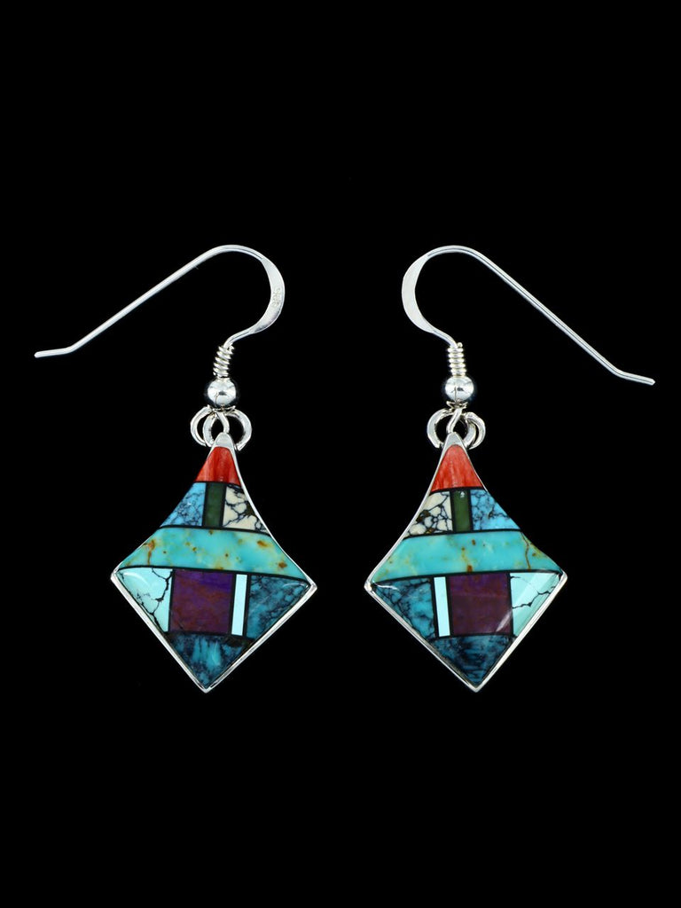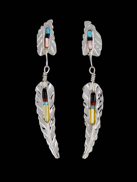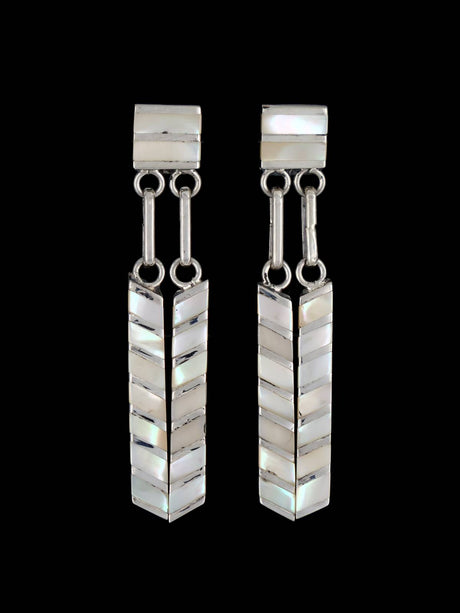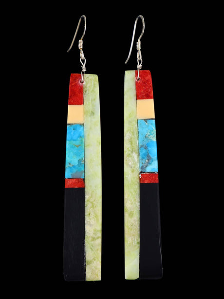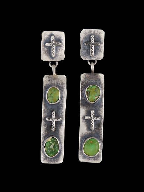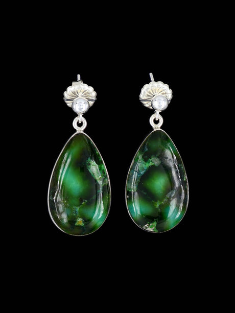 Navajo Gaspeite Sterling Silver Inlay Dangle Post Earrings