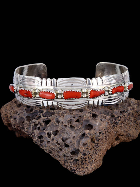Native American Jewelry Natural Mediterranean Coral Cuff Bracelet
