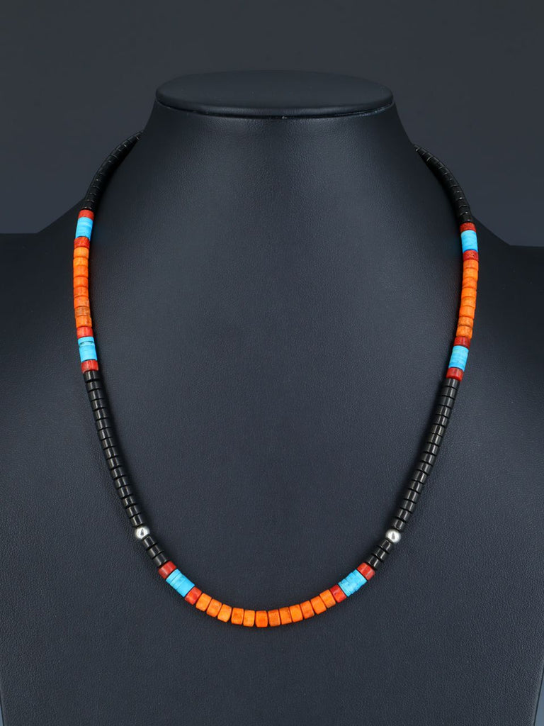 Native American Santo Domingo Turquoise and Spiny Oyster Necklace