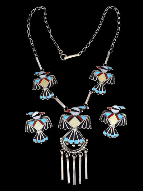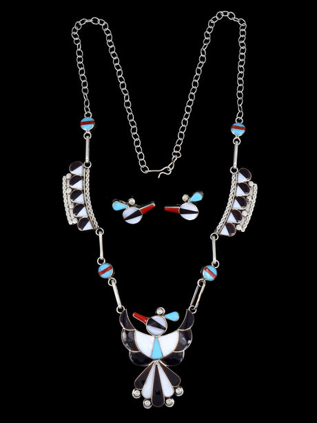 Sterling Silver Native American Zuni Inlay Thunderbird Necklace Set