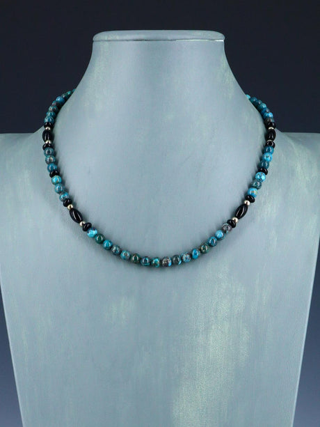 18" Native American Turquoise and Onyx Beaded Choker Necklace Set