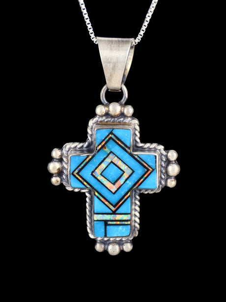 Native American Jewelry Coral and Turquoise Cross Pendant