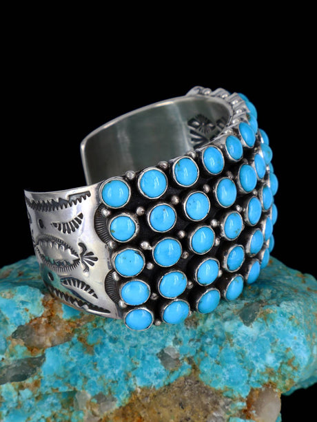 Sterling Silver Kingman Turquoise Navajo Sandcast Cross Pendant
