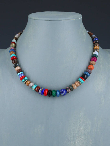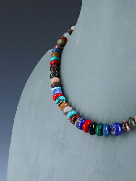 Native American Santo Domingo Lapis and Shell Heishi Necklace