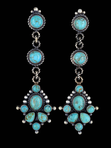 Navajo Sterling Silver Turquoise Waterfall Dangle Earrings