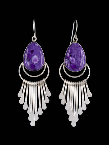 Navajo Sterling Silver Purple Charoite Dangle Earrings