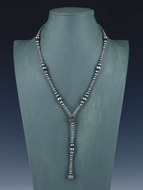 Native American Sterling Silver Bead Lariat Necklace