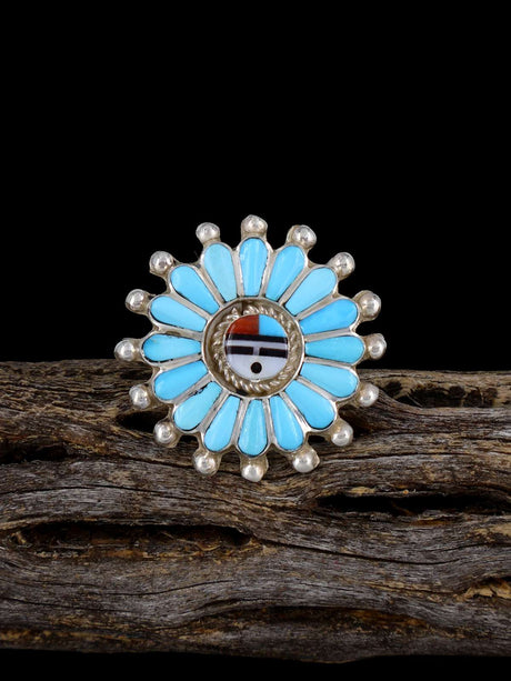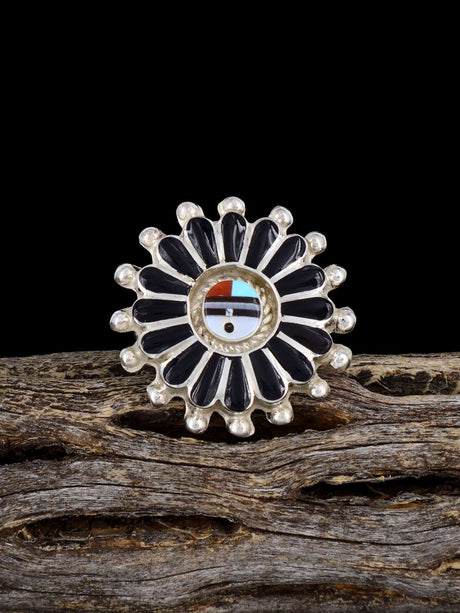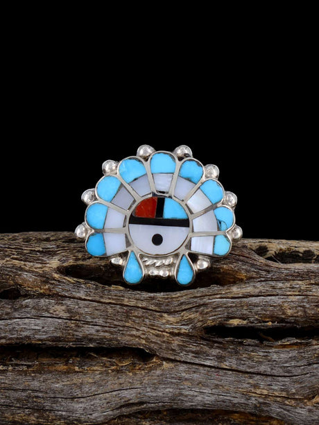 Sterling Silver Multistone Sunface Zuni Inlay Ring, Multiple Sizes