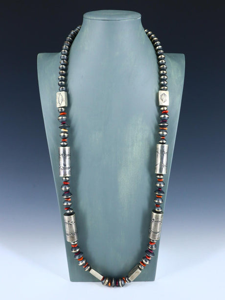 Navajo Sterling Silver Navajo Beaded Jocla Necklace