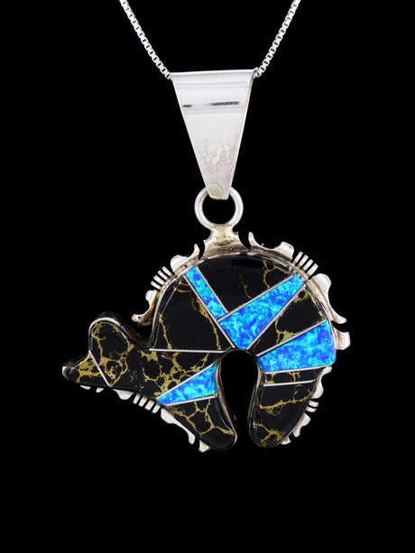 Navajo Onyx and Opalite Mosaic Inlay Bear Pendant