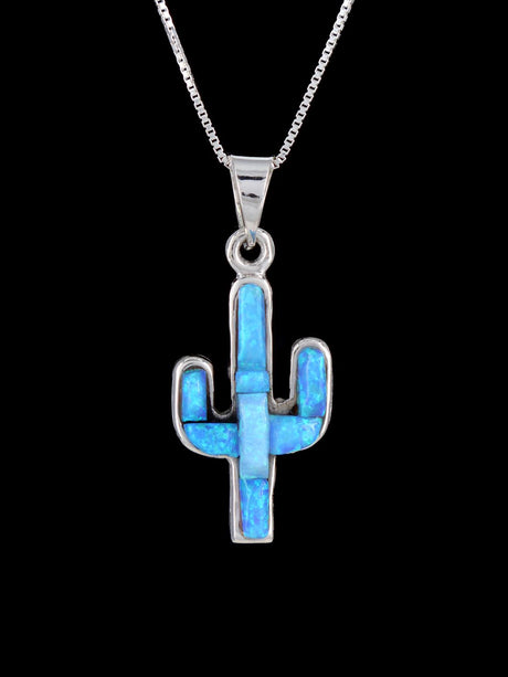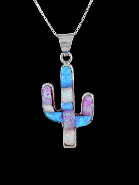 Native American Spiderweb Opal Inlay Cactus Pendant