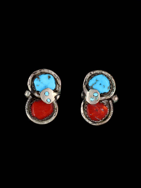 Sterling Silver Zuni Opalite and Coral Inlay Post Earrings