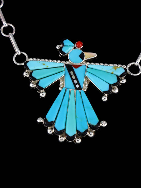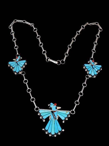 Sterling Silver Native American Zuni Inlay Thunderbird Necklace Set