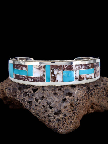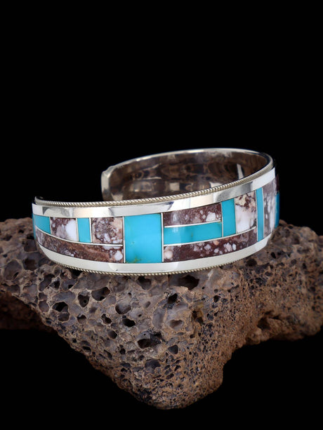 Zuni Inlay Sterling Silver Turquoise Cuff Bracelet