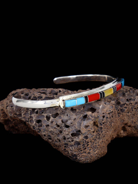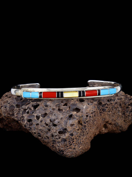 Vintage Old Zuni Inlay Sterling Silver Cuff Bracelet
