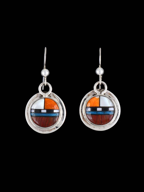 Sterling Silver Zuni Inlay Sunface Post Dangle Earrings