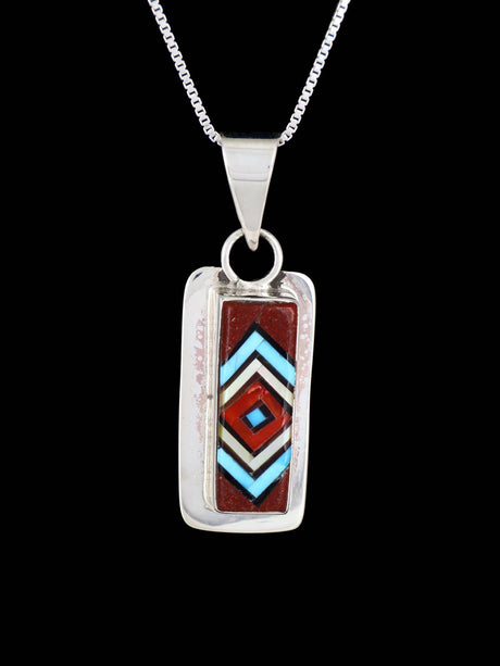 Native American Jewelry Sterling Silver Zuni Inlay Sunface Pendant