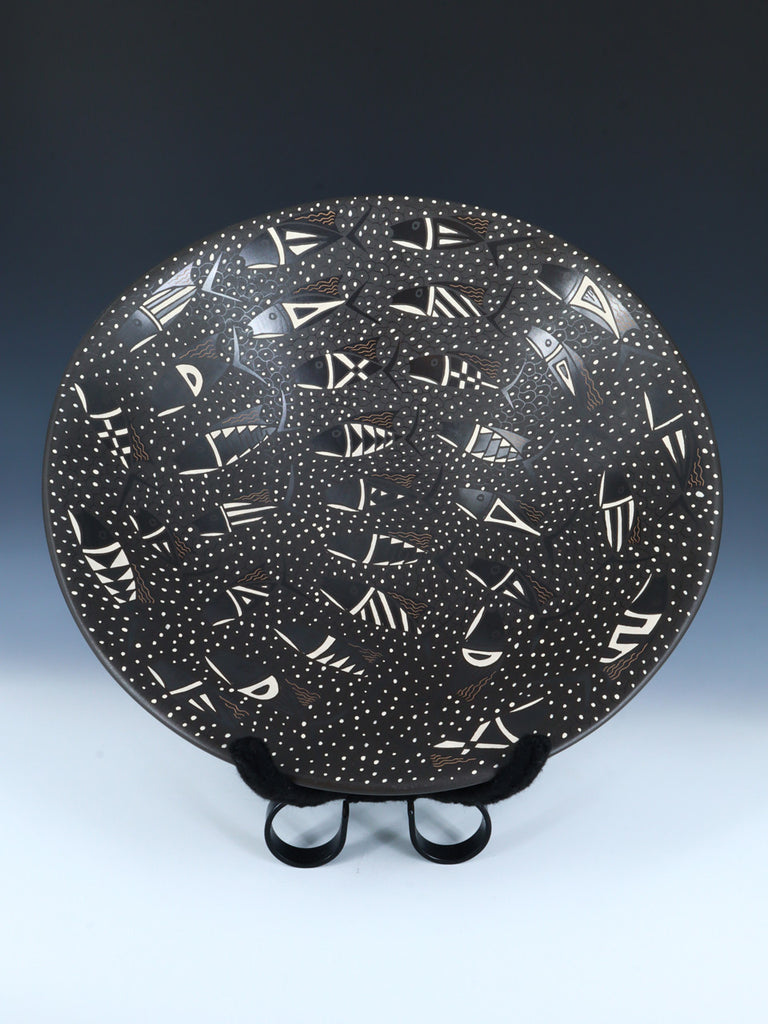 Mata Ortiz Hand Coiled Pottery Etched Butterfly Plate