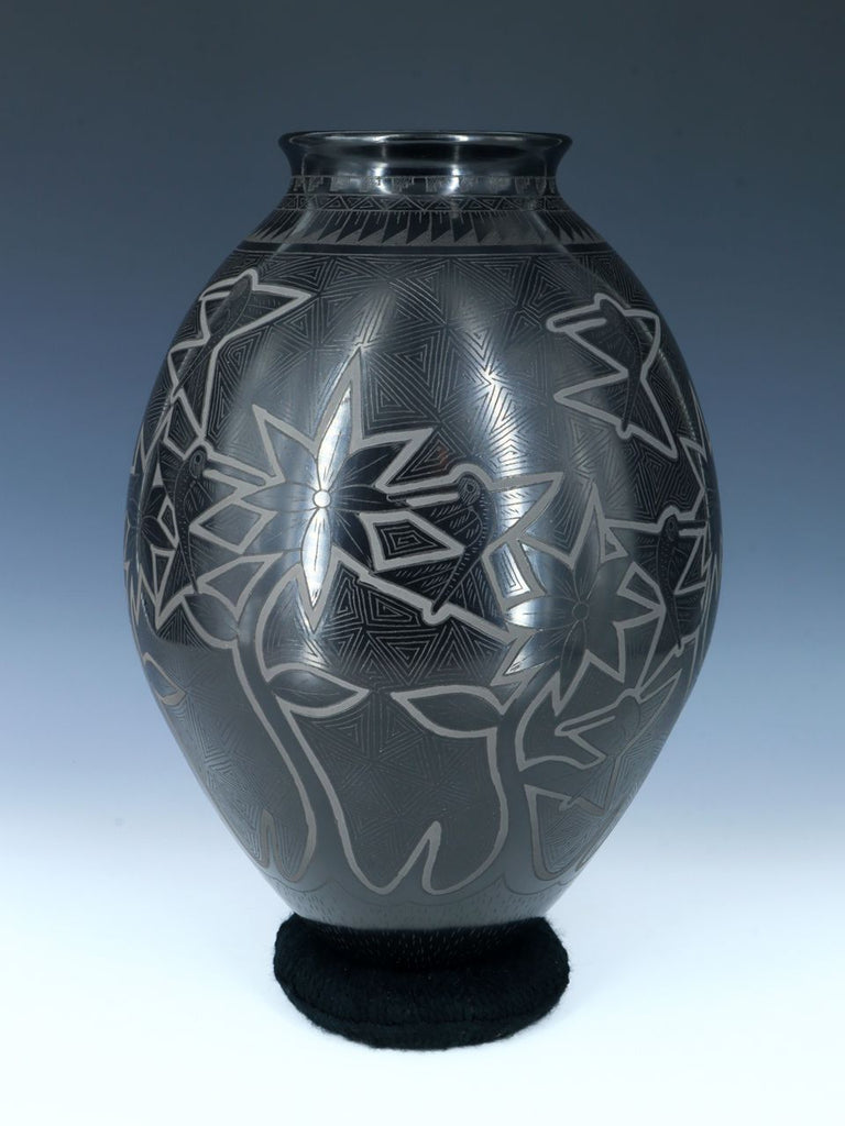 Etched Hummingbird Horsehair Acoma Pueblo Pottery Vase