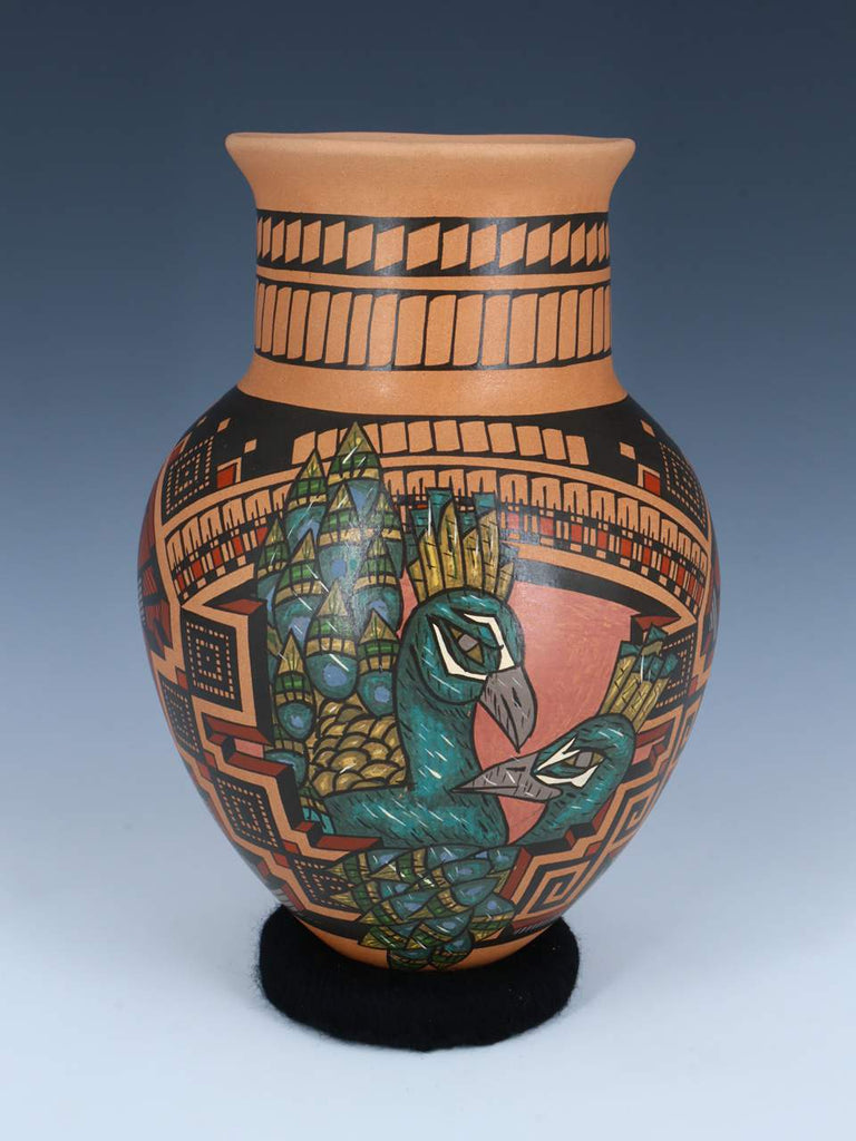 Large Mata Ortiz Hand Coiled Etched and Painted Pottery Vase