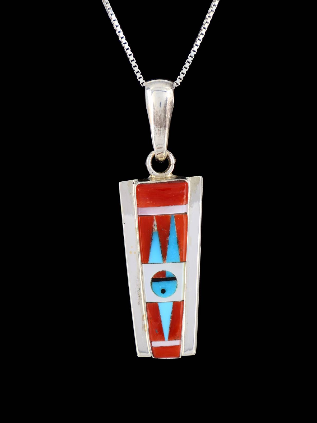Native American Jewelry Sterling Silver Zuni Inlay Sunface Pendant