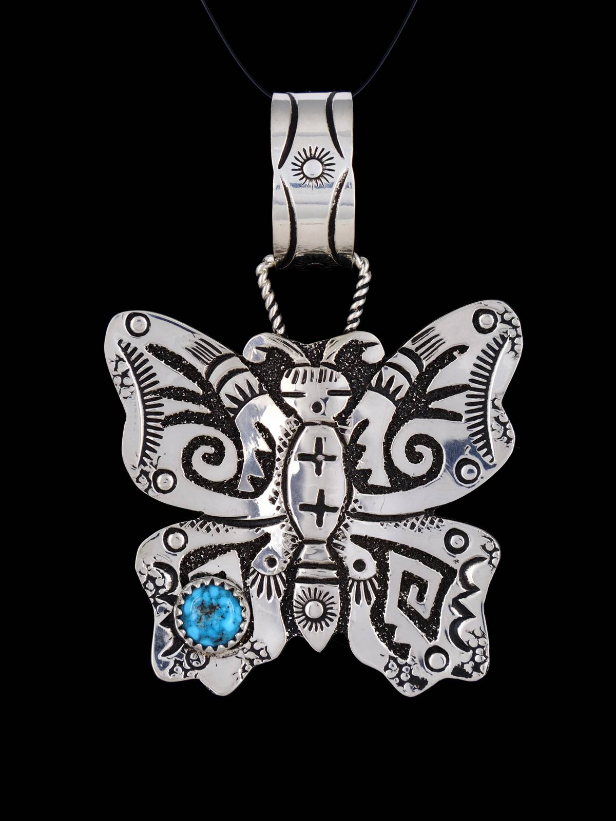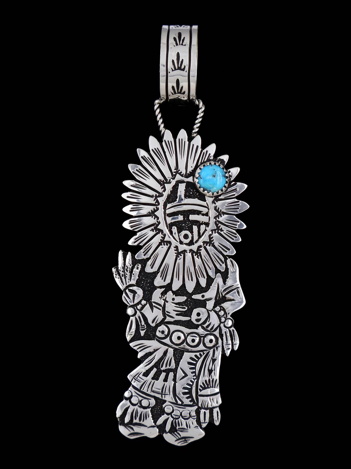 Native American Sterling Silver Turquoise Sun Shield Pendant