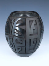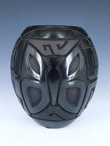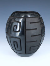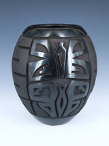 This hand-coiled piece features intricate geometric designs created through deep carving. It originated from an estate and bears the signature "Daniel 21" of the talented artist, Daniel Begay, who learned the art of pottery from his parents, Harrison Begay Jr and Marie Suazo. Hailing from Santa Clara Pueblo, Daniel beautifully combines elements of Dine and Santa Clara cultures and traditions in his work. This piece is meticulously crafted using traditional coil-building and stone polishing techniques, and fired in the traditional way. With an MBA from The University of New Mexico, Daniel is a true master of his craft. His wife, Melodie, and daughters, Violet and Ayani, are the inspiration behind his signature, "Daniel," followed by the year the piece was created.
