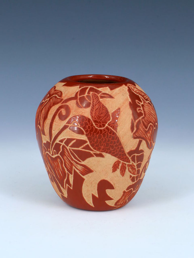 Santa Clara Etched Hornet Hand Coiled Pottery Vase