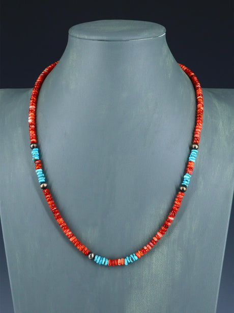Navajo Jewelry Single Strand Turquoise and Spiny Oyster Necklace