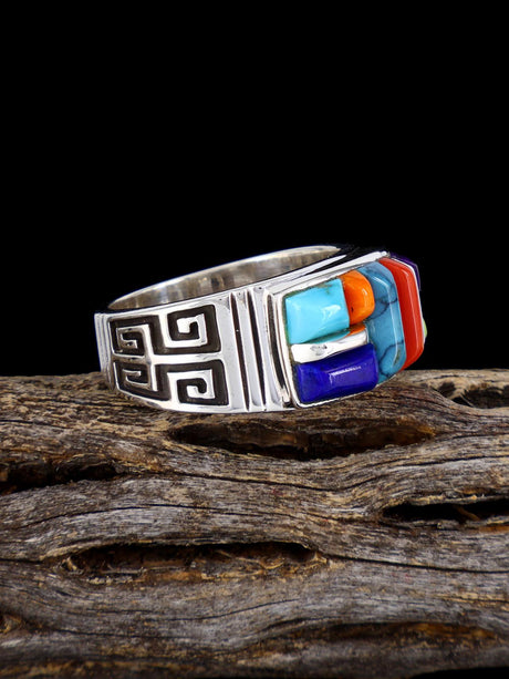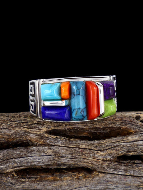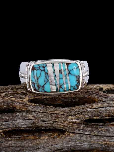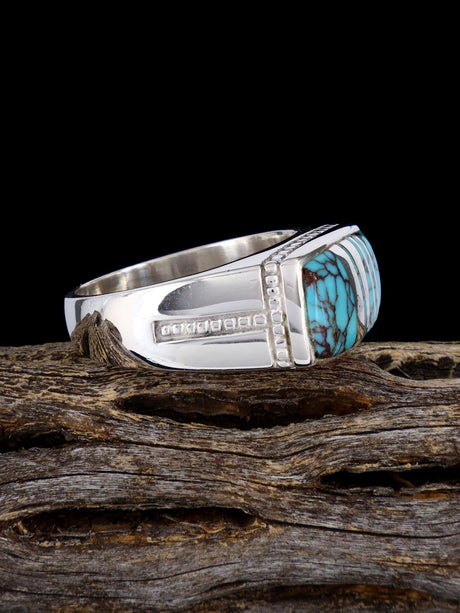 Navajo Turquoise and Opalite Inlay Ring, Size 10 3/4
