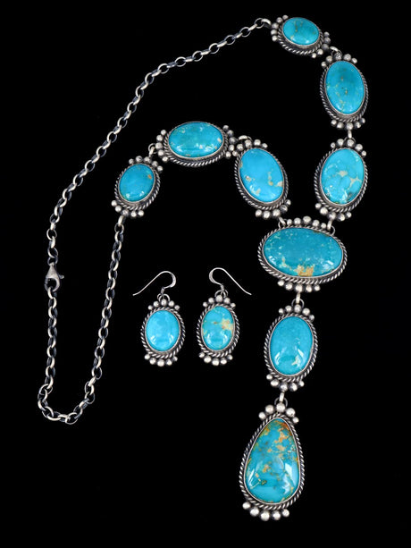 Navajo Sterling Silver Hardy Pit Kingman Turquoise Lariat Necklace Set