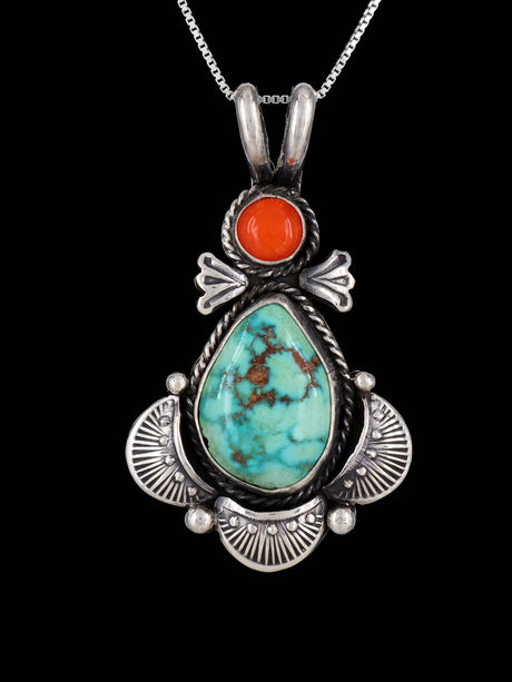 Native American Kingman Turquoise and Coral Cluster Pendant