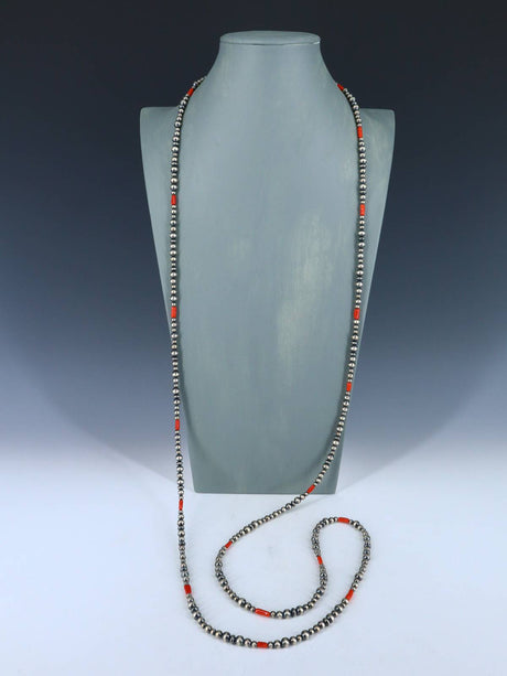 Native American Sterling Silver Natural Coral Lariat Necklace