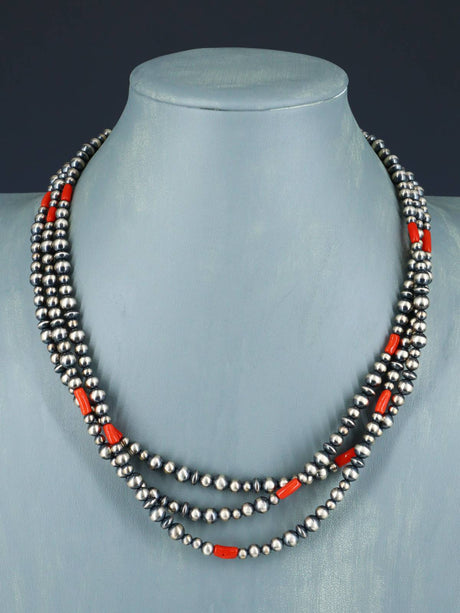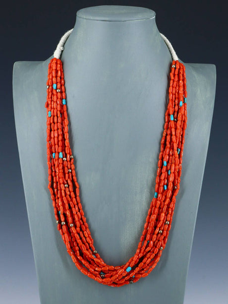 30" Navajo Bamboo Coral Multi Strand Beaded Necklace