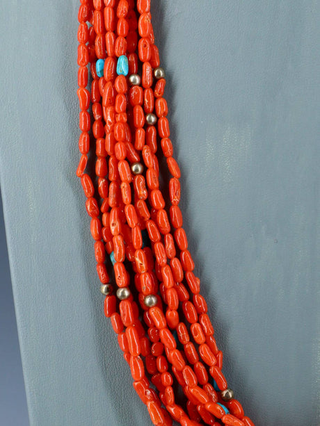Santo Domingo Turquoise and Apple Coral Jocla Necklace