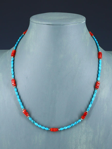 Santo Domingo Turquoise and Apple Coral Jocla Necklace