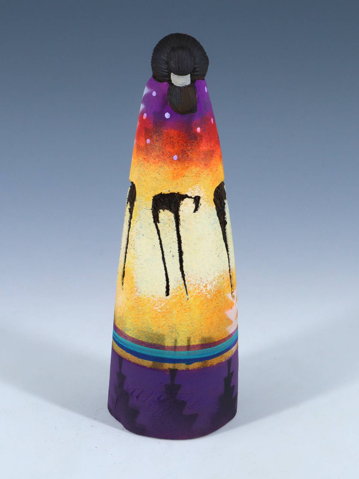 Navajo artist John Whiterock creates his clay sculptures as a way to honor the women in his life. Each one is intricately carved and painted with vibrant colors. Signed by the artist.