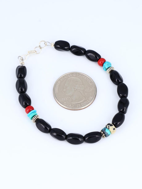 24" Navajo Black Onyx Multi Strand Beaded Necklace