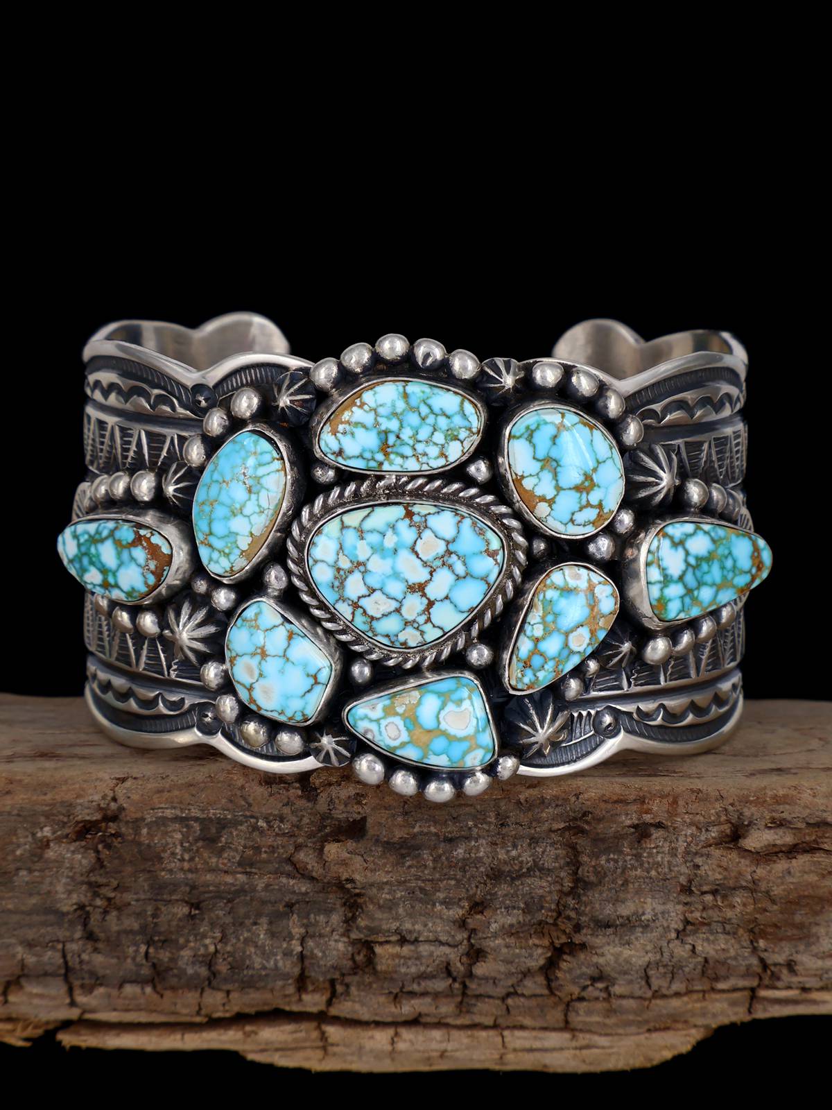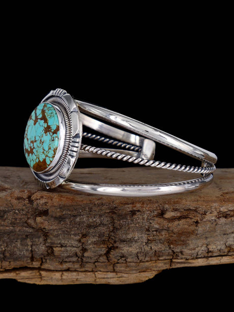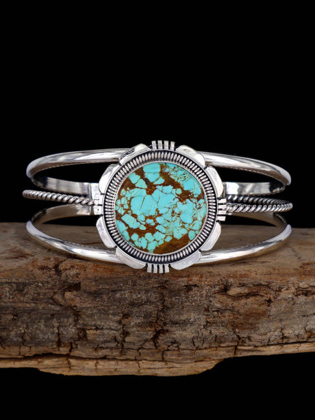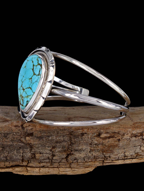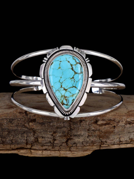 Navajo Sculpted #8 Turquoise Sterling Silver Cuff Bracelet