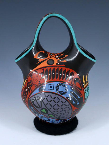 Mata Ortiz Hand Coiled and Painted Wedding Vase