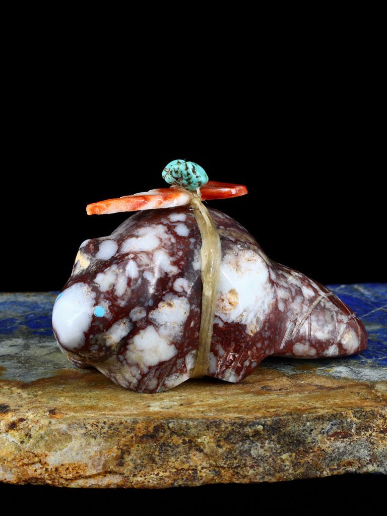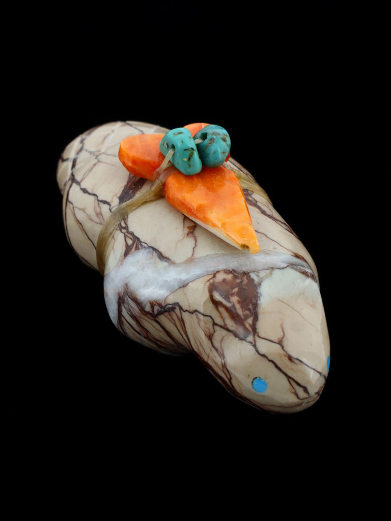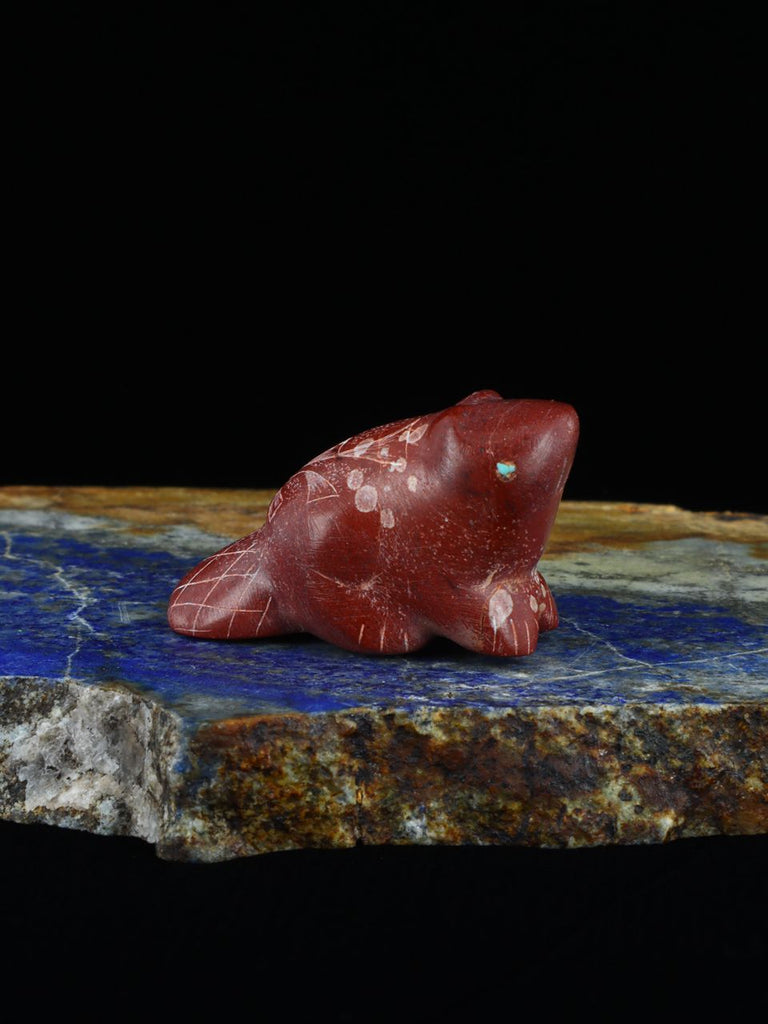 American Indians have used fetishes throughout recorded history. Fetish carvings are believed to hold magical powers and protect the owner or craftsmen from various problems of mind or body.  The Zuni Indian Fetish must be taken care of and are given offerings of cornmeal and kept in special turquoise encrusted fetish pots or pouches. It is also believed that the care a Native American Fetish receives is directly proportional to the protection it will provide.